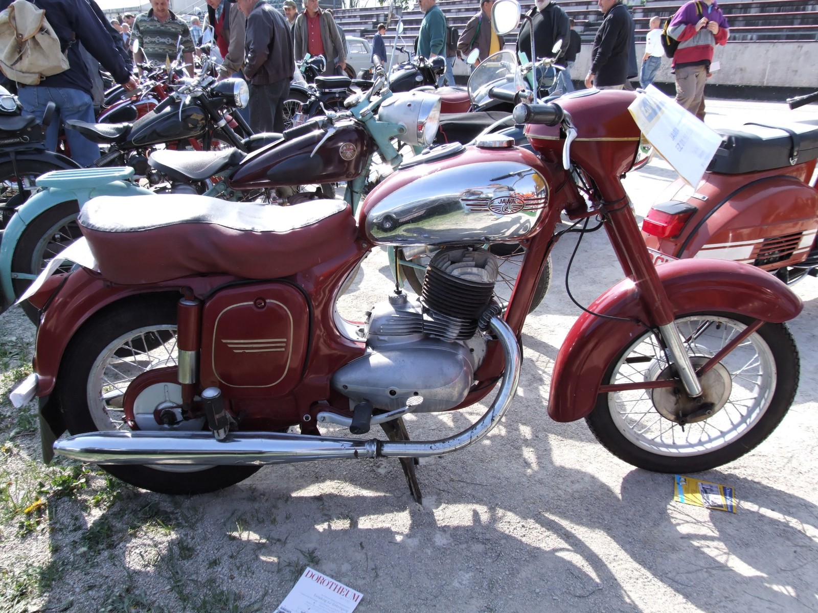 Також відома як “Старушка” або “Сливка”, ця модель стала еталоном мотопромисловості середини XX століття не лише в Чехословаччині, але й у всій Європі. Стильний, надійний і комфортний чеський мотоцикл можна було придбати в магазинах сільпо і спорттоварів.