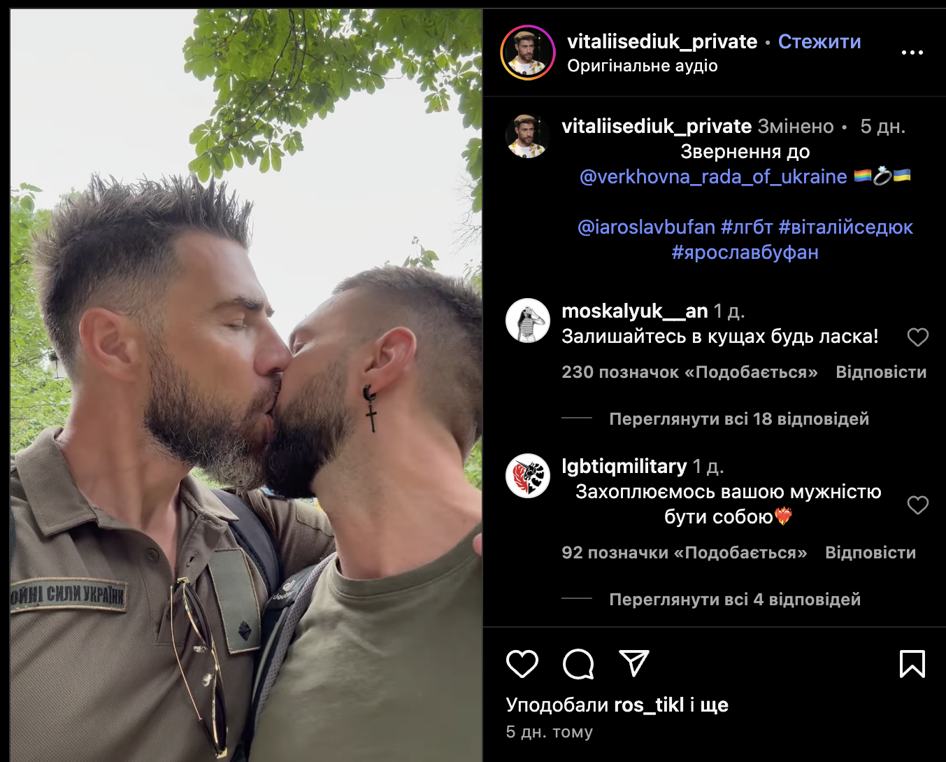 В своем видеообращении к украинскому парламенту Виталий совместно с партнером открыто выразил стремление официально оформить свои отношения.